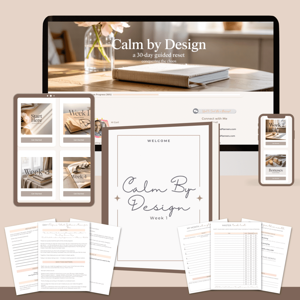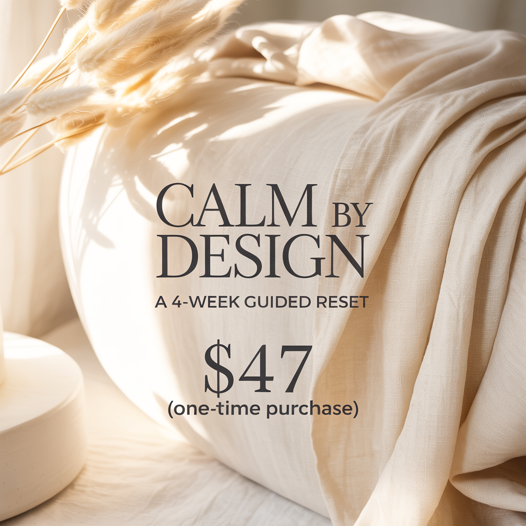 Calm By Design is a 4-week guided reset that helps you reduce mental load and build days that actually work — without adding more to your plate.